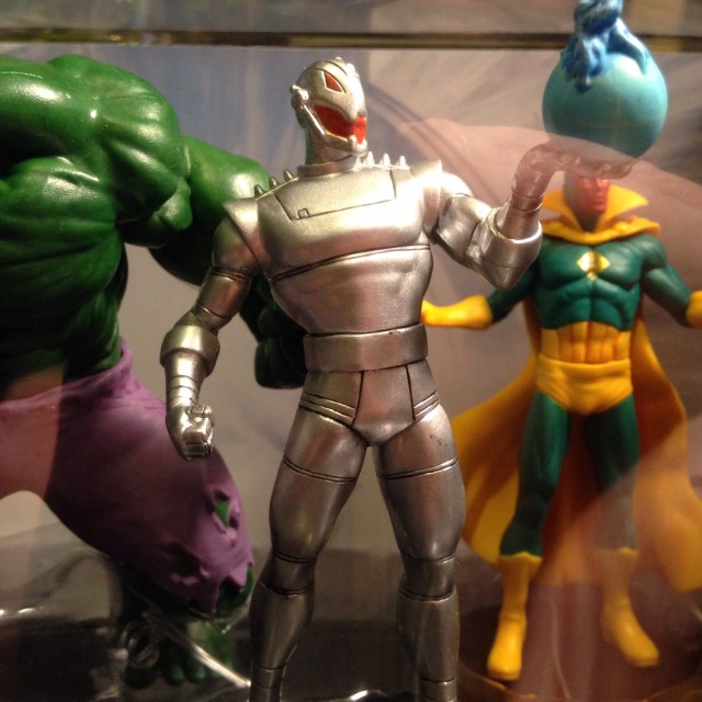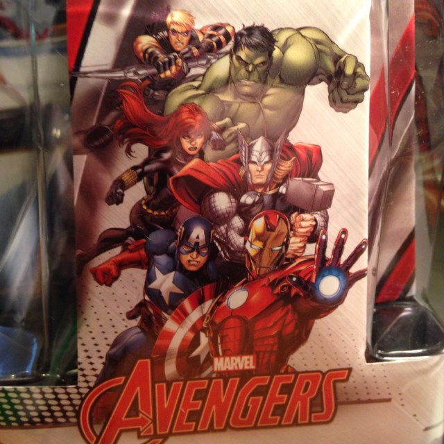 Pictured above, we see a wide view of this Avengers Playset which is on sale in the Disney store under an “Avengers: Age of Ultron” sign. Pretty cool.