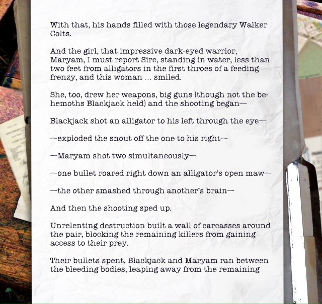 We need to catch up to the thrilling adventures of Alex Simmons’ Blackjack, recently nominated for. Glyph Award as Best Black Male Character. I was honored to write with Alex the serialized adventure “Blackjack: Ransom for a Dead King” and chapters 1-6 are available free for your entertainment elsewhere on this blog. Let us continue the celebration of this outstanding hero with the next few chapters.