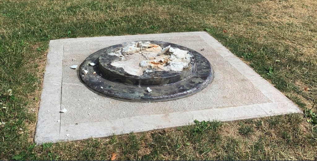 The chronology is pretty easy to assume. Some freedom-loving whiteboys enraged by the recent destruction of American heroes of the slave era decided to get some payback by turning this …
