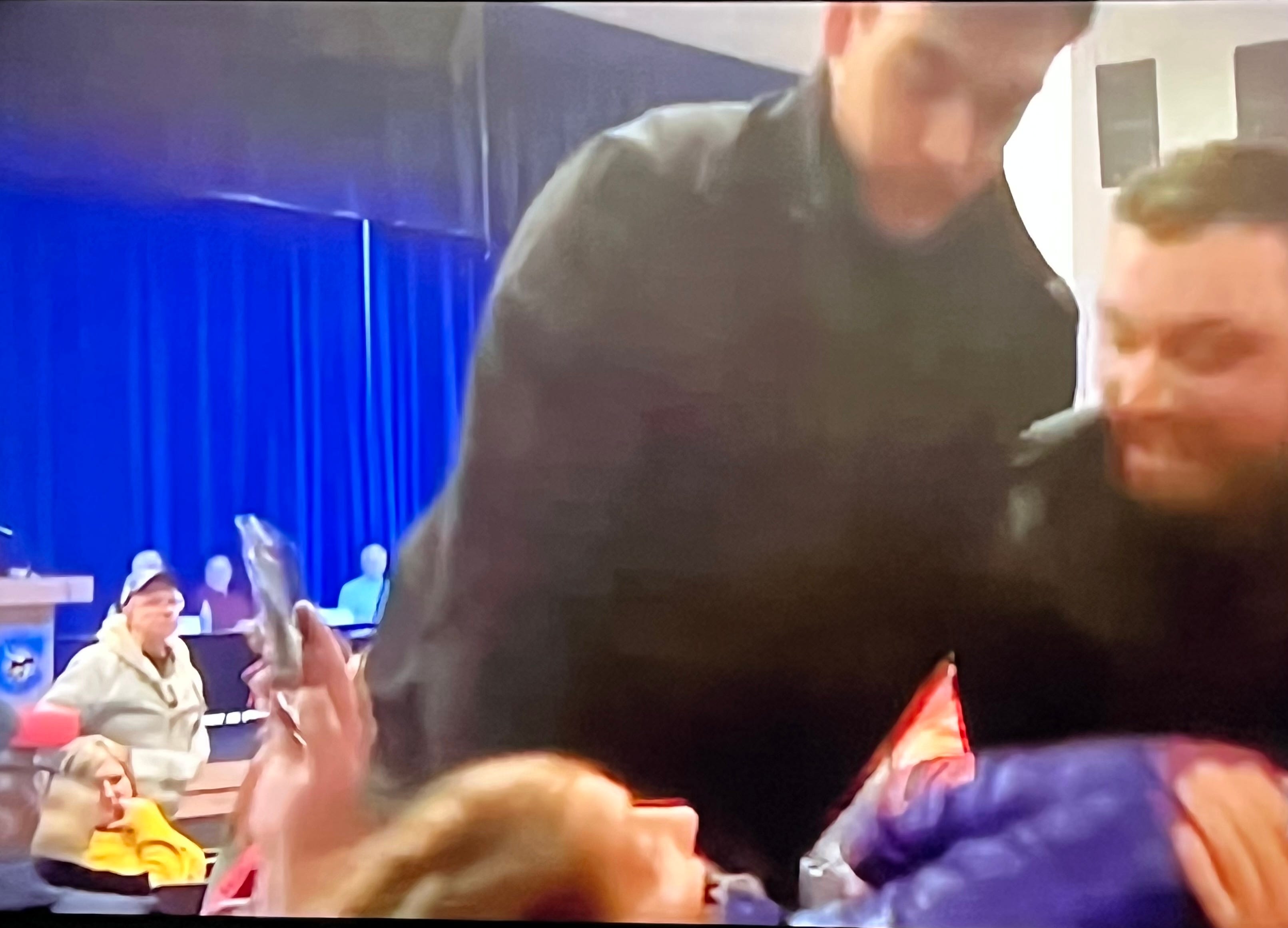 And here we see private security, later reported to be from LEAR Asset Management of Hayden, Idaho, beginning to drag her out. The video shows Borrenpohl repeatedly asking them to identify themselves to no response, which reportedly violates local city ordinances. These unidentified strangers dragged her all the way up the aisle and out of the auditorium. And as disturbing as all this is, the ridiculous assault charge against Borrenpohl has reportedly been dropped and people have raised substantial funds to cover her medical bills and legal fees.