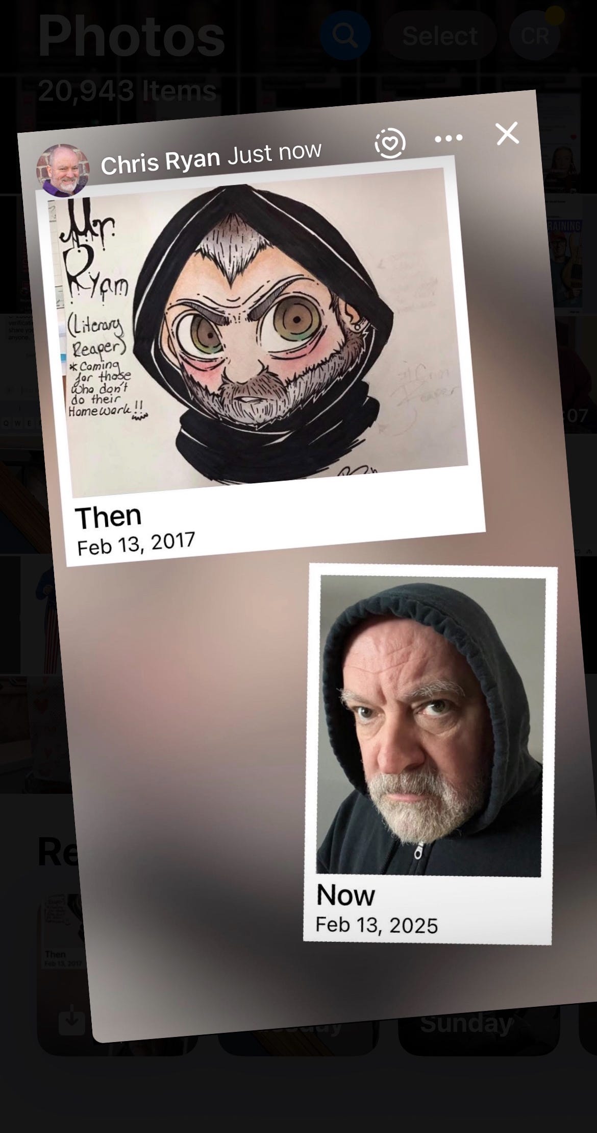 Secondly, back when I was a teacher, a gifted student drew a pic of me that I seem to have grown into in reality: